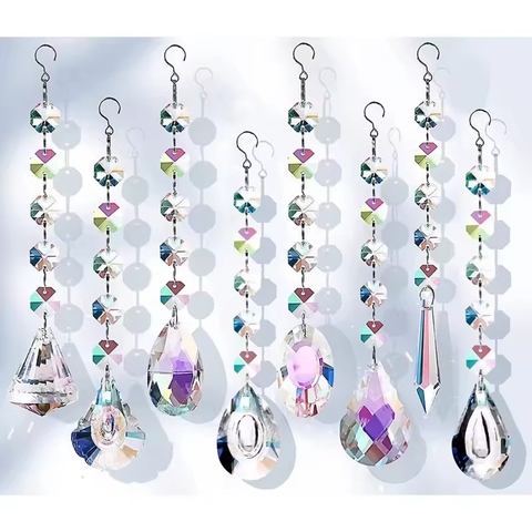 Ciondolo con perline ottagonali cristalli AB colorati da appendere alla parete in pietra di ghiaia con sfere di cristallo a catena per appendere la finestra